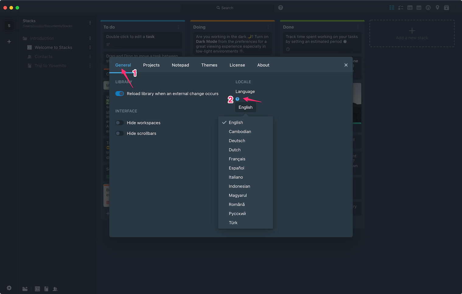 2. In the Preferences, click on the General tab and click the question mark icon under Locale