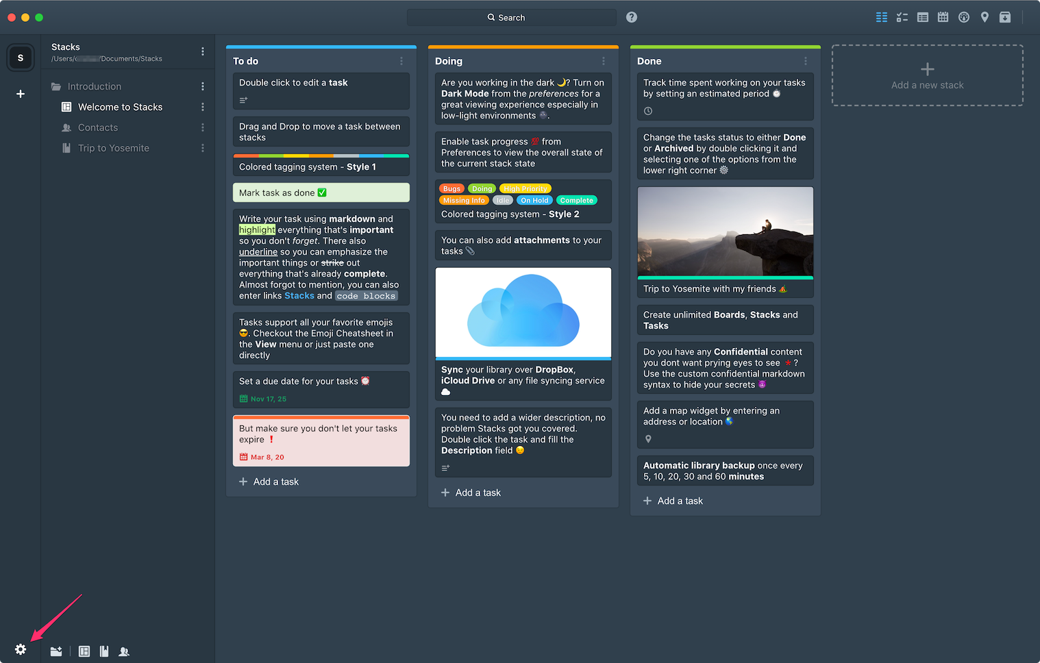 1. Open the Preferences by clicking the `Cog` icon on the bottom left corner of the window or use the hotkeys Ctrl + , on Windows and Linux and Cmd + , on macOS